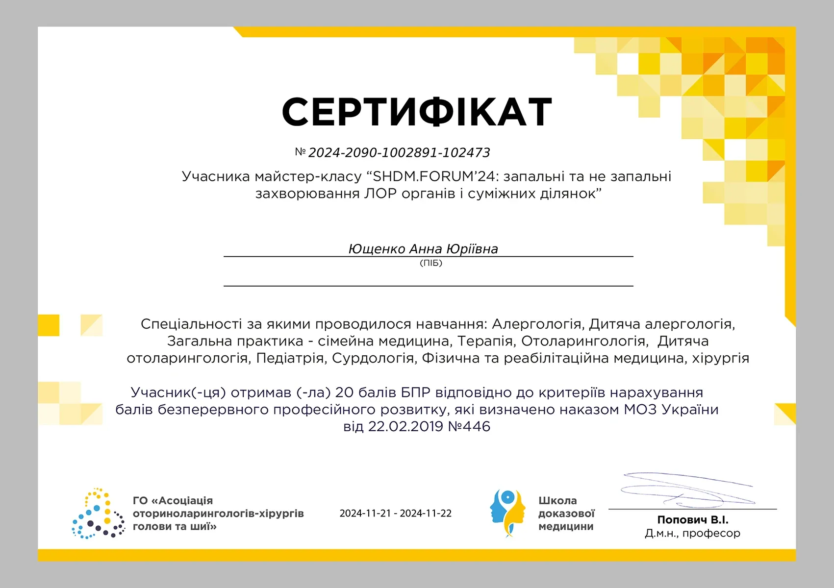 SHDM.FORUM’24 – 21–22.11.2024, Запальні та незапальні захворювання ЛОР-органів і суміжних ділянок