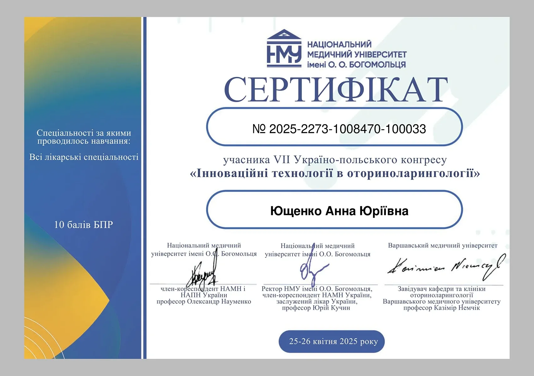 VII Україно-польський конгрес «Інноваційні технології в оториноларингології» – 25–26.04.2025