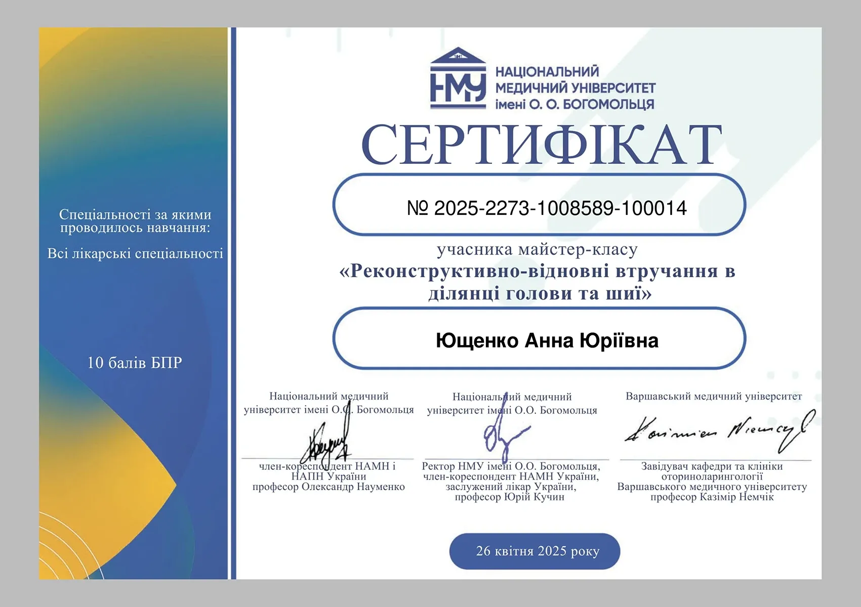 Майстер-клас «Реконструктивно-відновні втручання в ділянці голови та шиї» – 26.04.2025