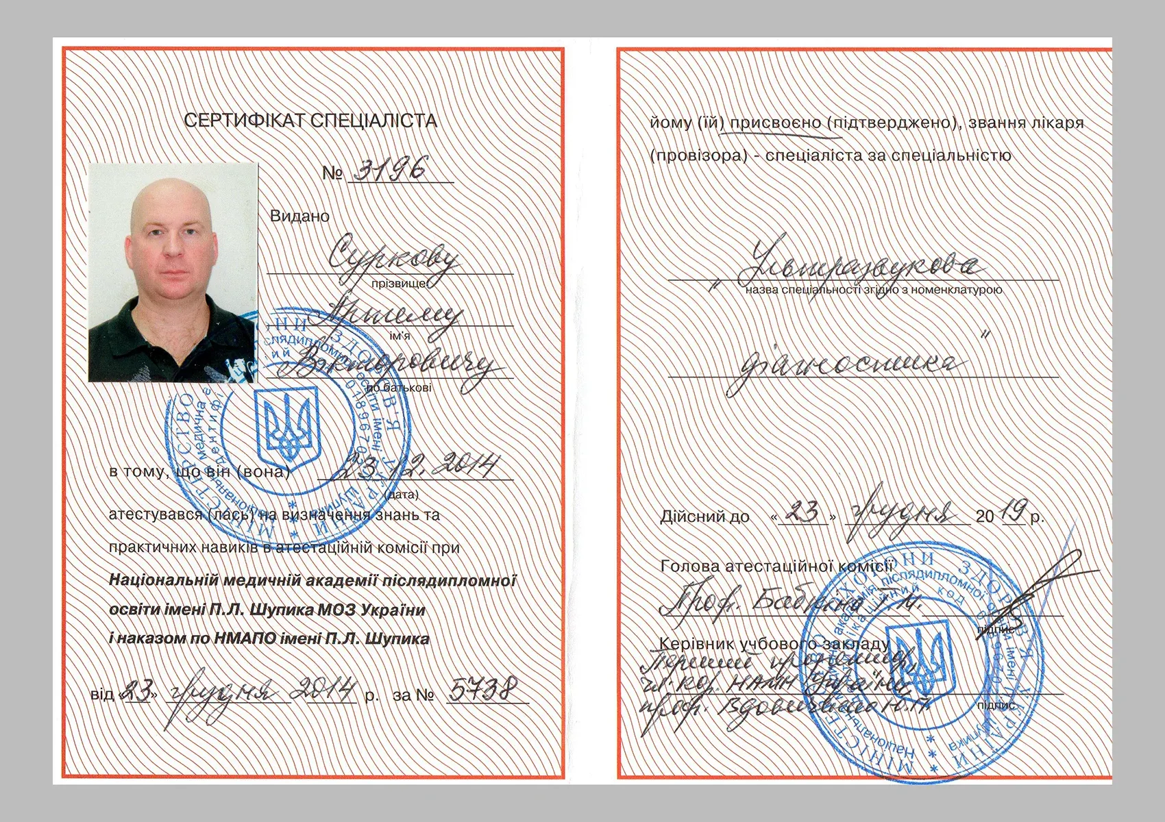 У 2014 р. пройшов спеціалізацію з ультразвукової діагностики.