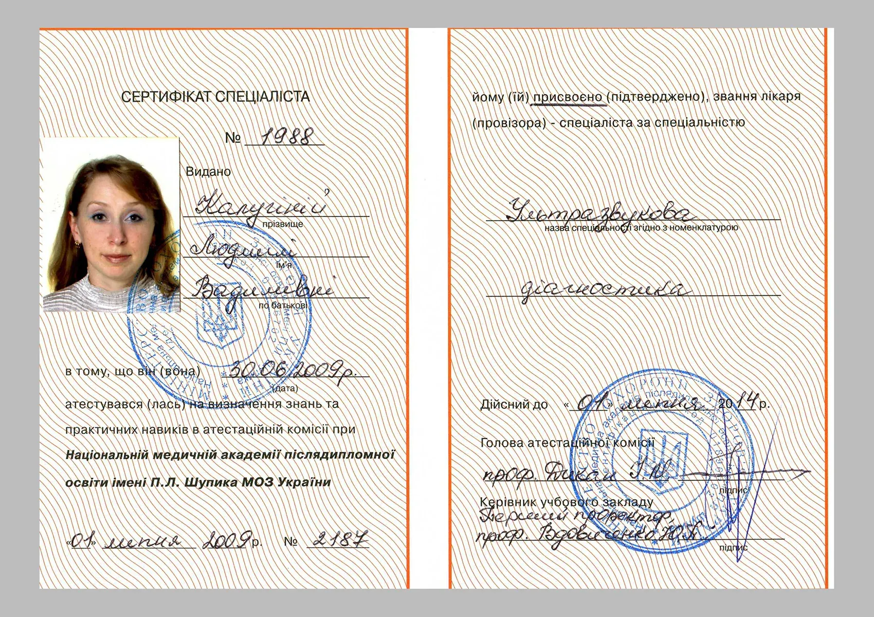 2009 р. – спеціалізація з УЗ діагностики КМАПО ім. П.Л.Шупика.
