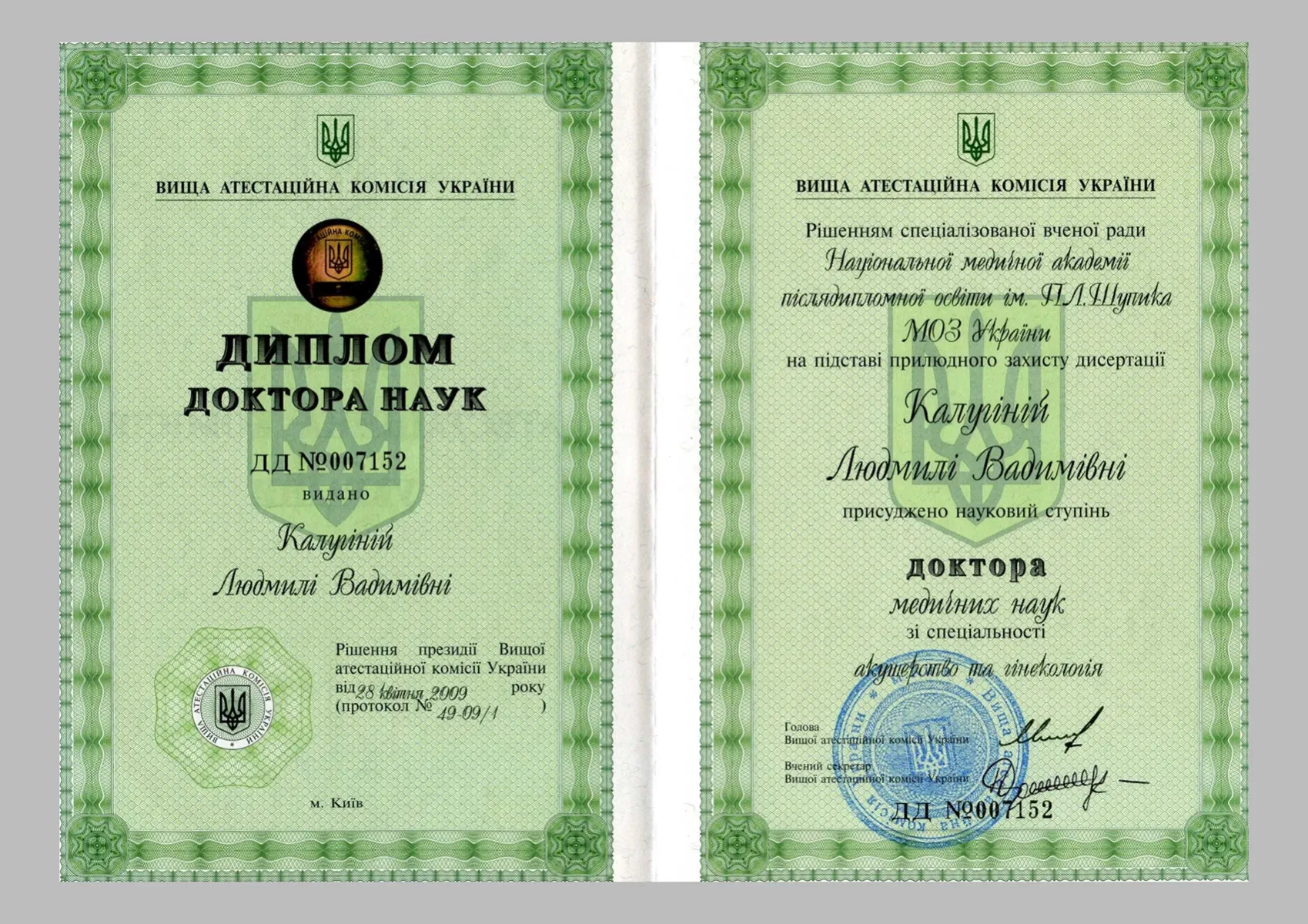 2009 р. – захистила докторську дисертацію на тему: «Клініко-патогенетичні аспекти прогнозування, лікування та профілактики анемії вагітних при запальних захворюваннях нирок».
