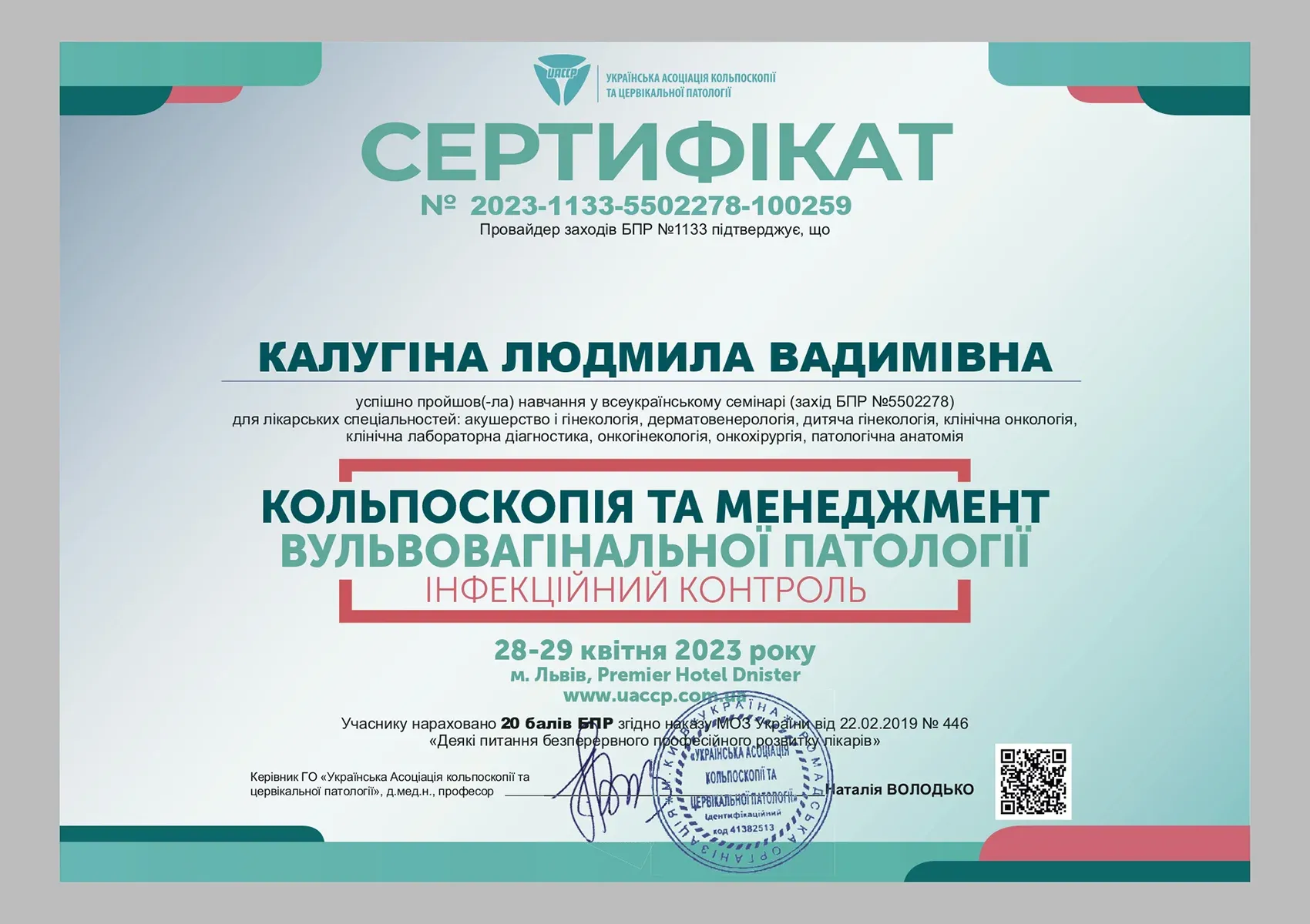 2016 р. – ТУ «Сучасні аспекти превентивної перинатології» КМАПО ім. П.Л. Шупика