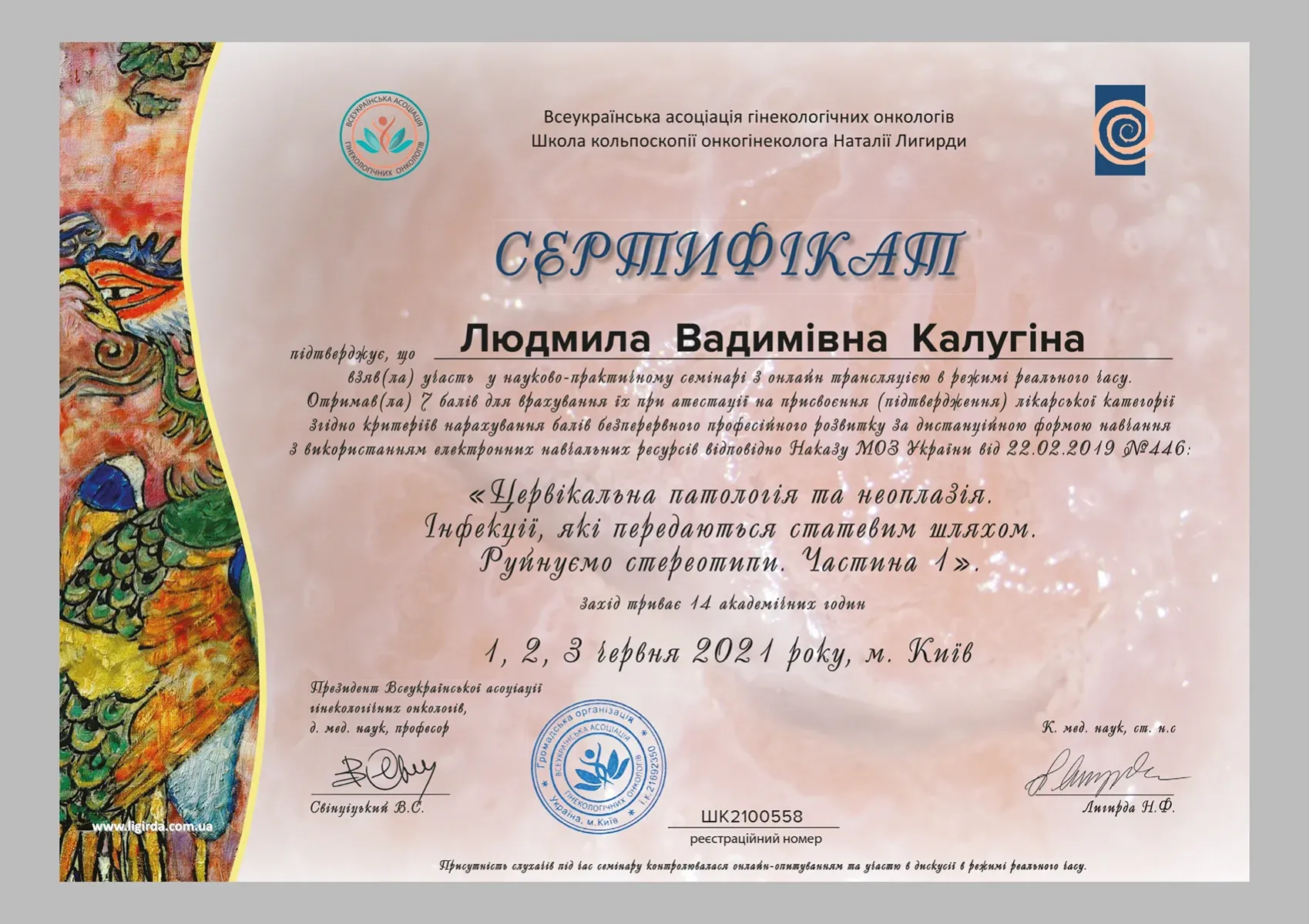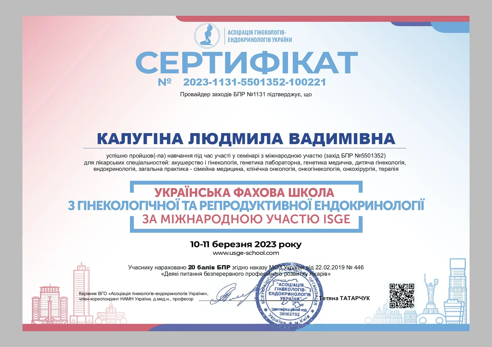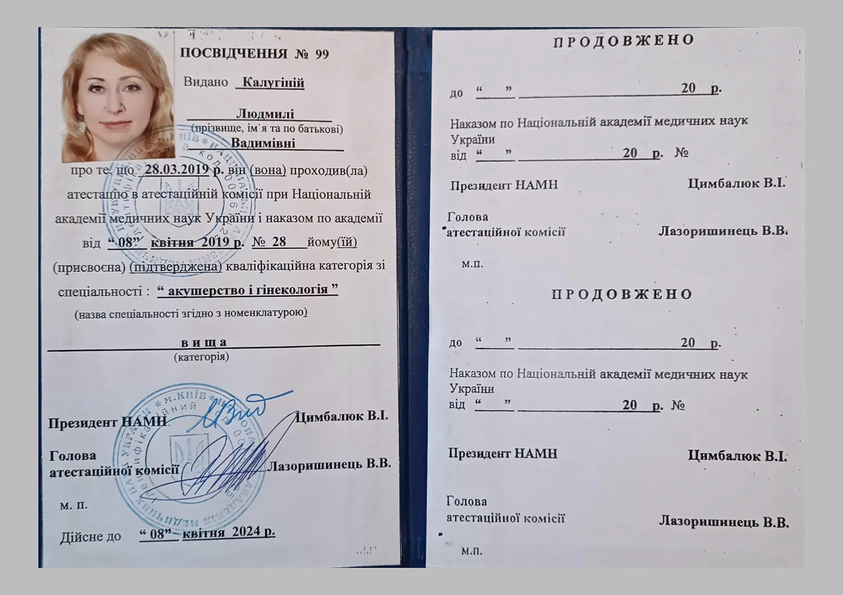 2018 р. – ТУ «Основні аспекти додаткових репродуктивних технологій» КМАПО ім. П.Л. Шупика