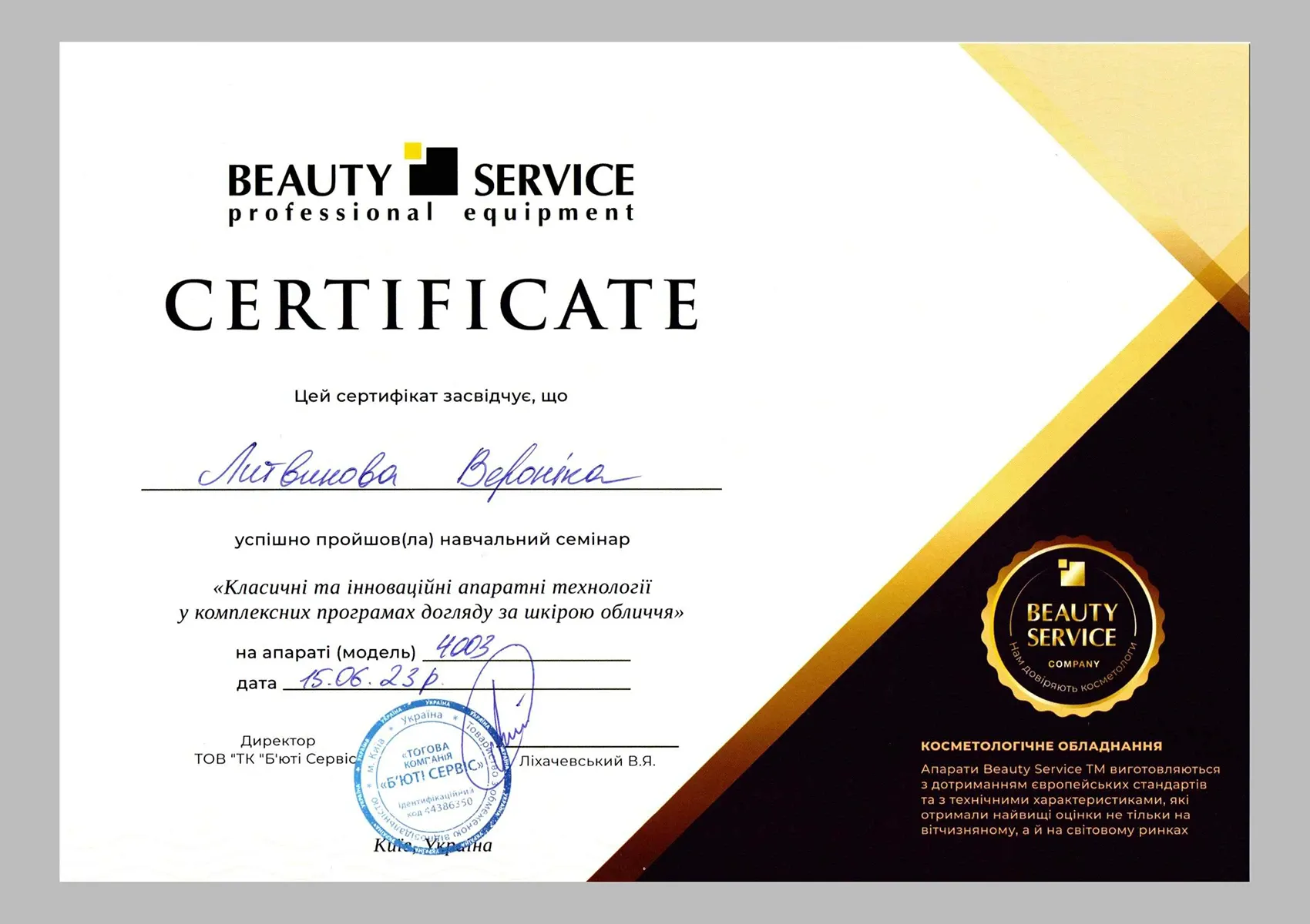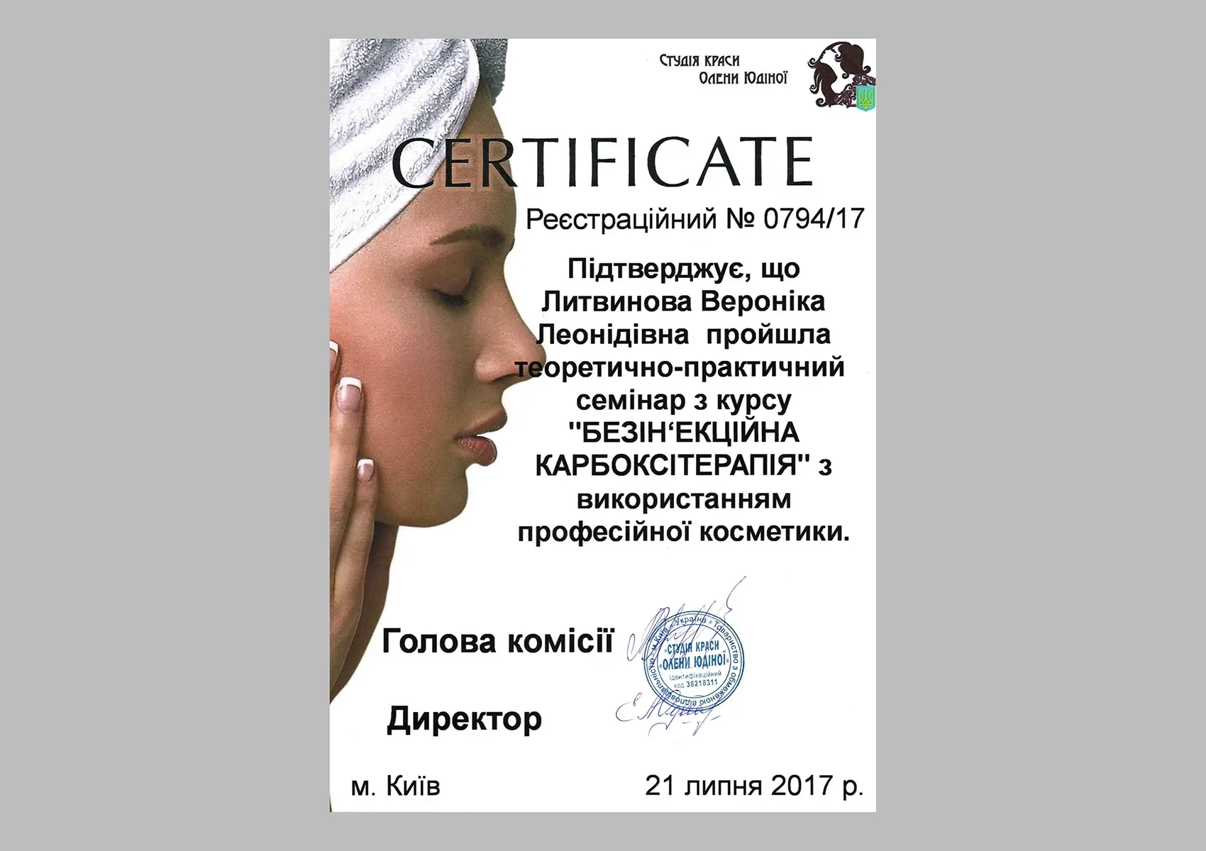 2017 – Безін’єкційна карбоксітерапія (підвищення кваліфікації)