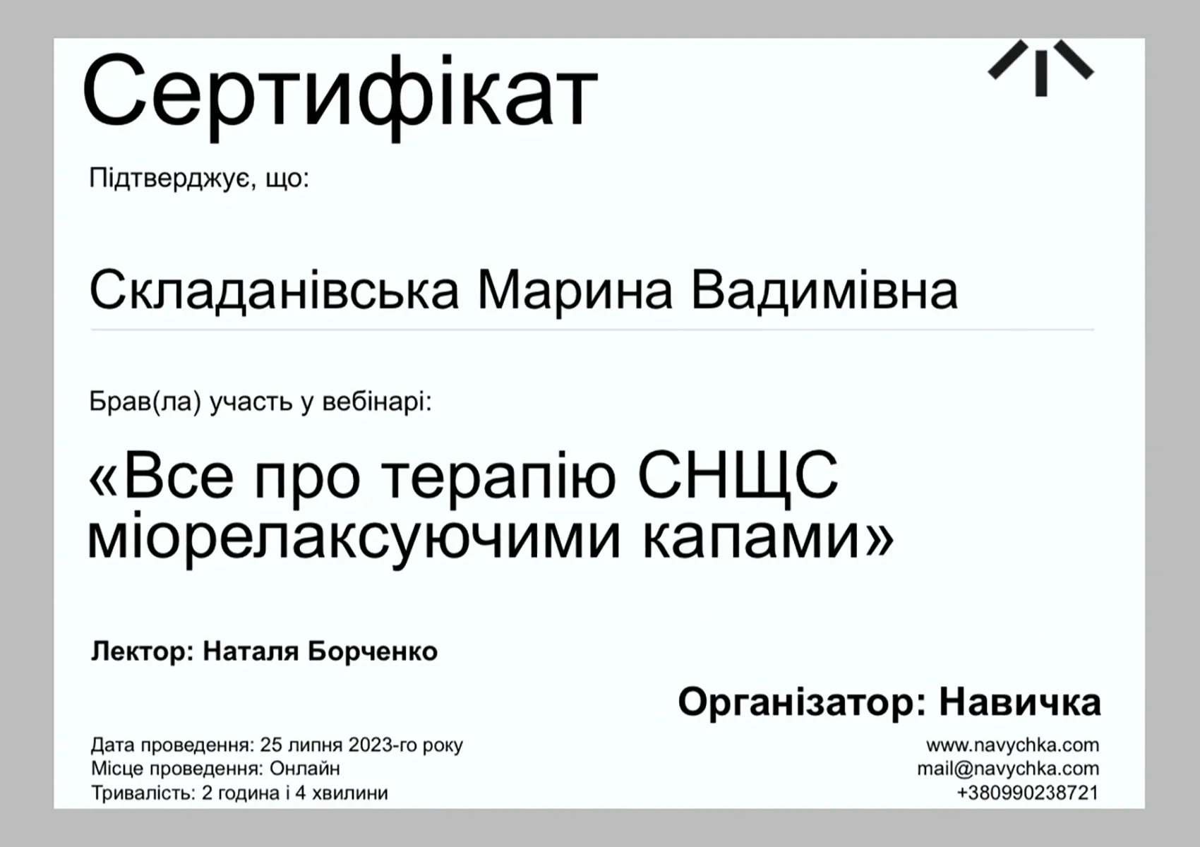 Дипломи та сертифікати лікаря