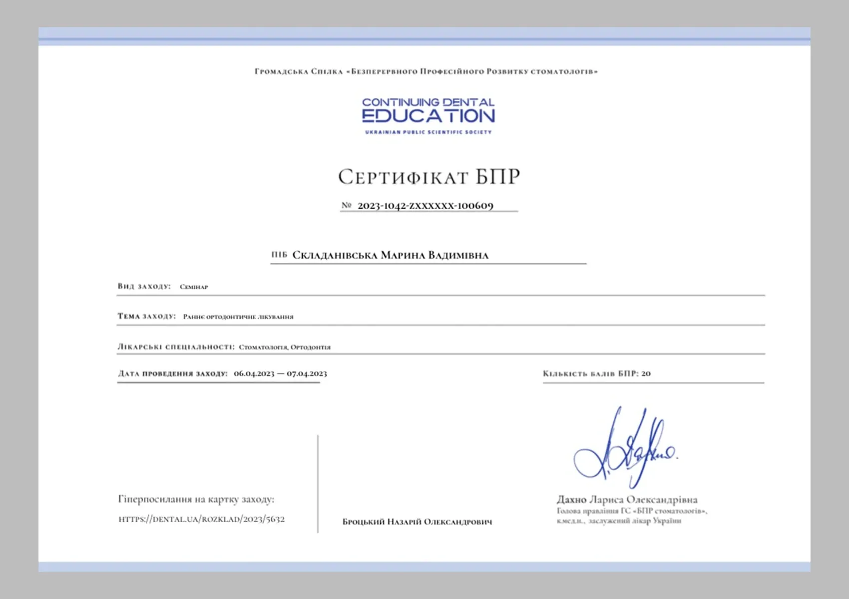 Семінар : «РАННЄ ОРТОДОНТИЧНЕ ЛІКУВАННЯ» (Назарій Броцький), Київ, 2023