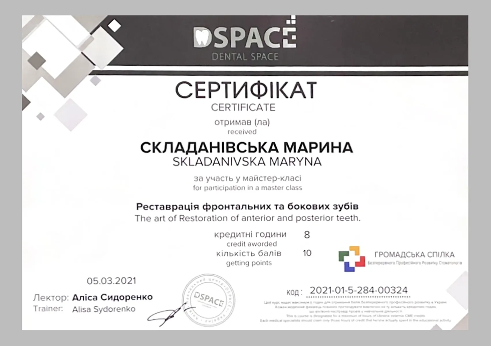Майстер-клас: «РЕСТАВРАЦІЯ ФРОНТАЛЬНИХ ТА БОКОВИХ ЗУБІВ» (DENTAL SPACE), Київ, 2021