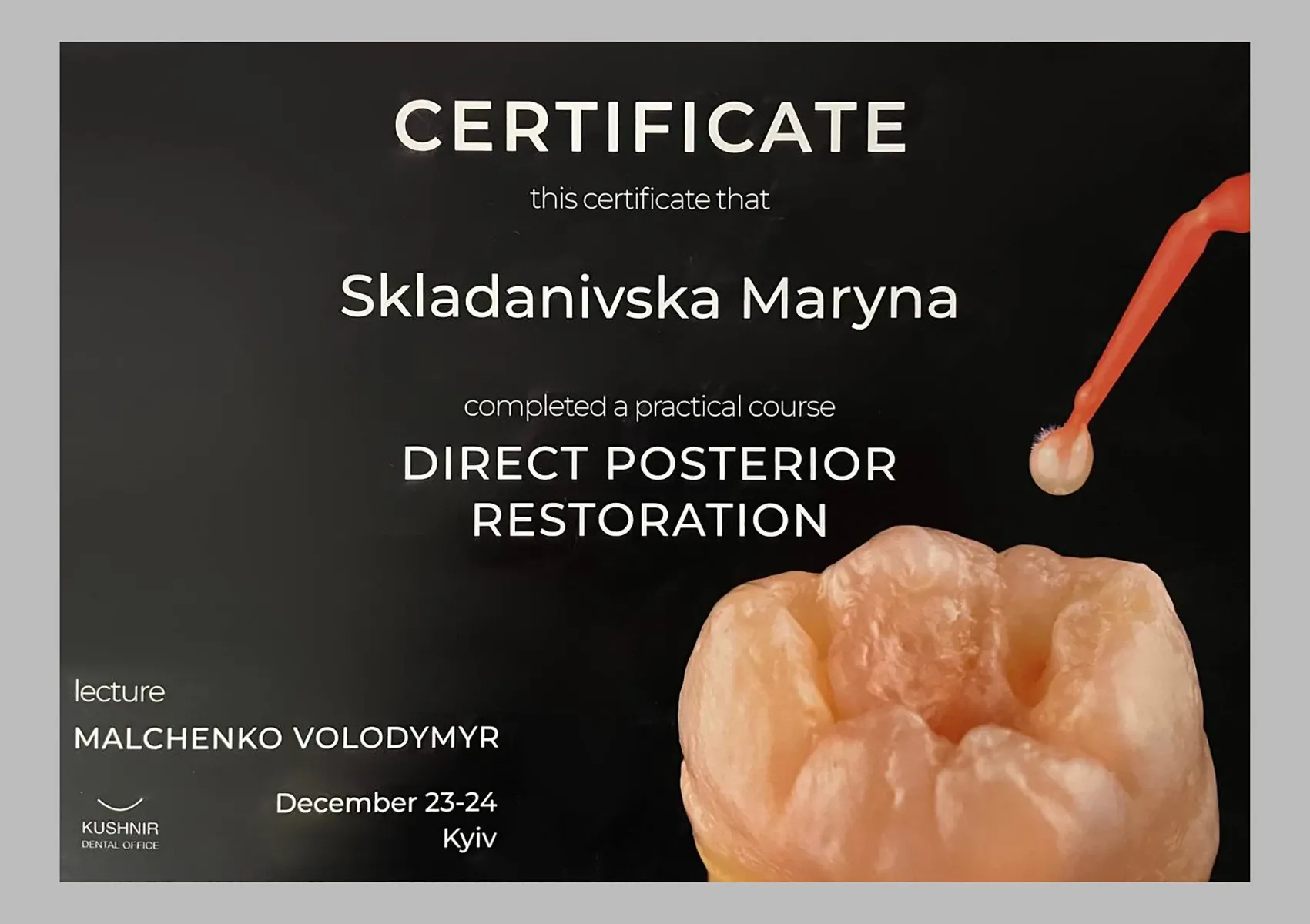 Practical course: «DIRECT POSTERIOR RESTORATION» (KUSHNIR DENTAL OFFICE), Kyiv, 2022