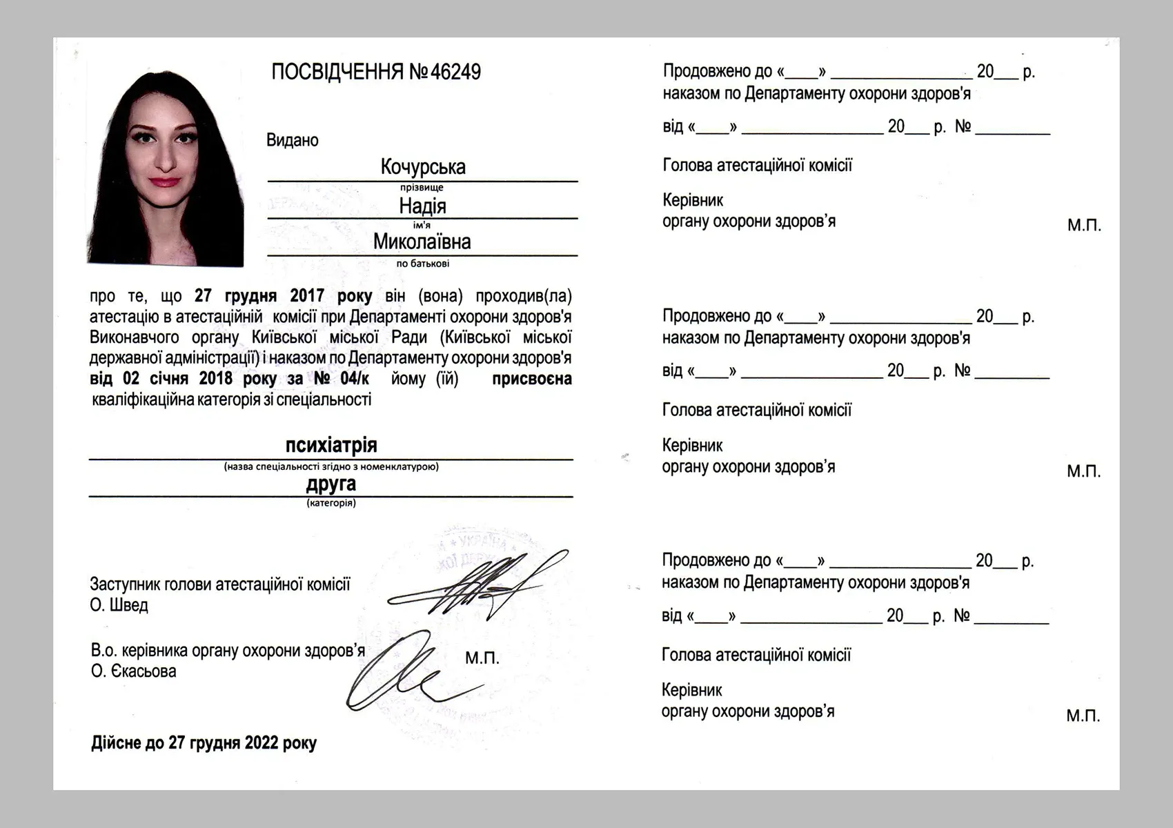 Надія Кочурська Лікар-психіатр, психотерапевт, нарколог