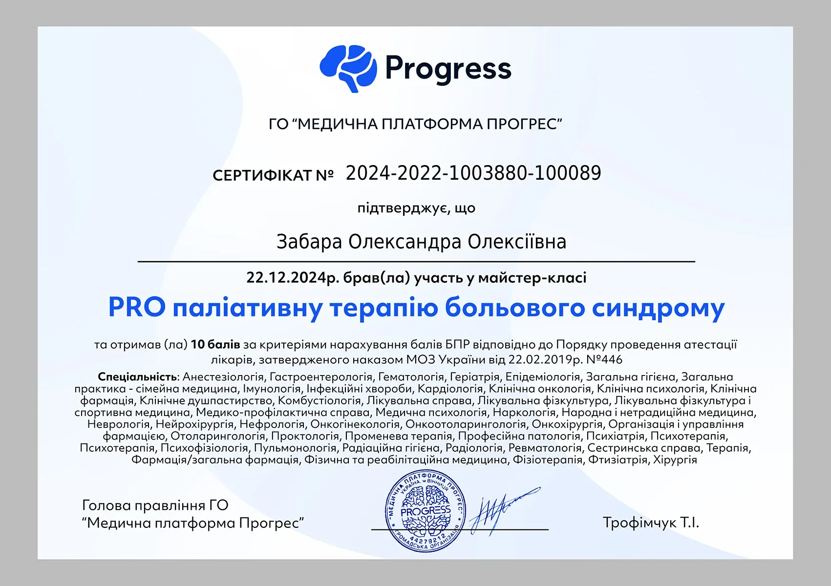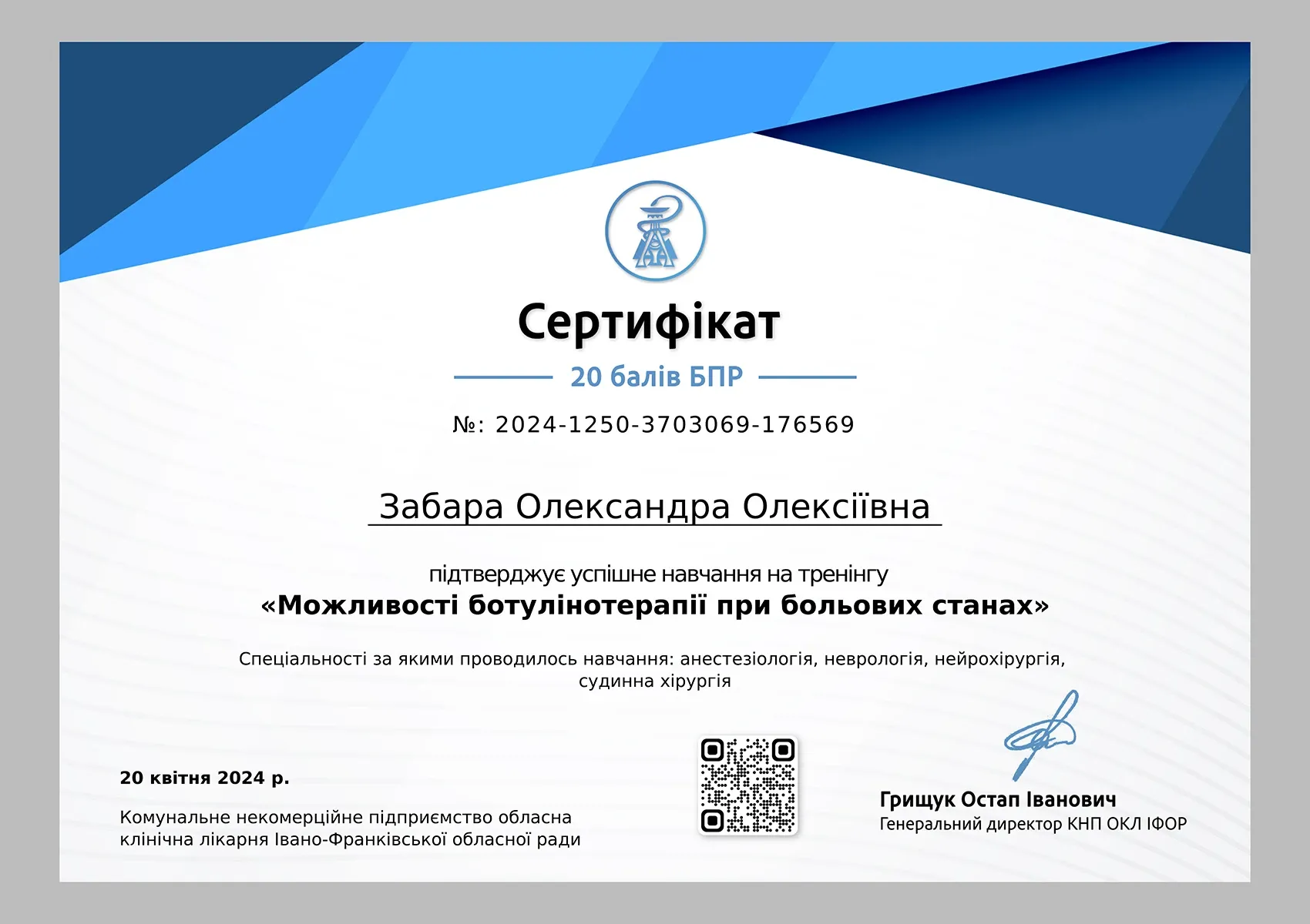 Національний університет охорони здоровʼя України ім. П. Л. Шупика, спеціальність — неврологія.