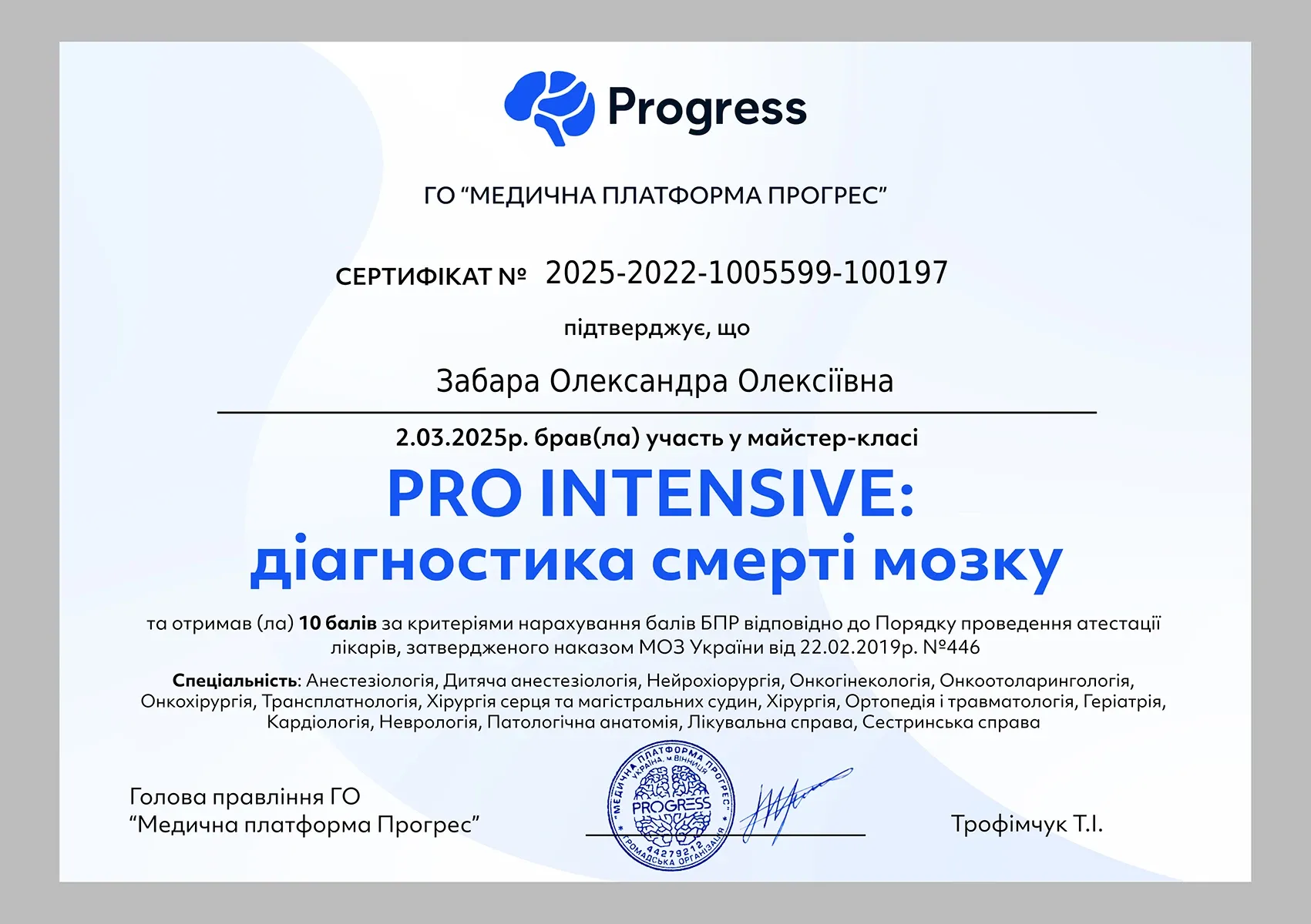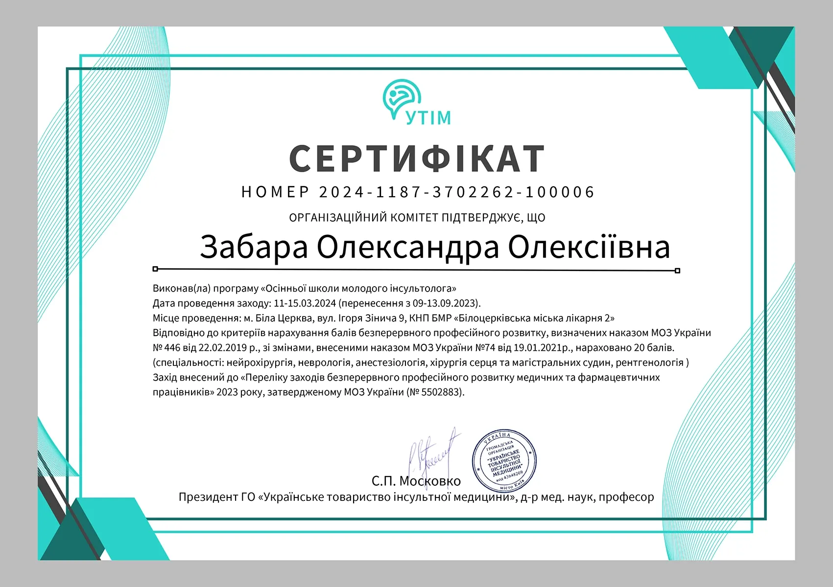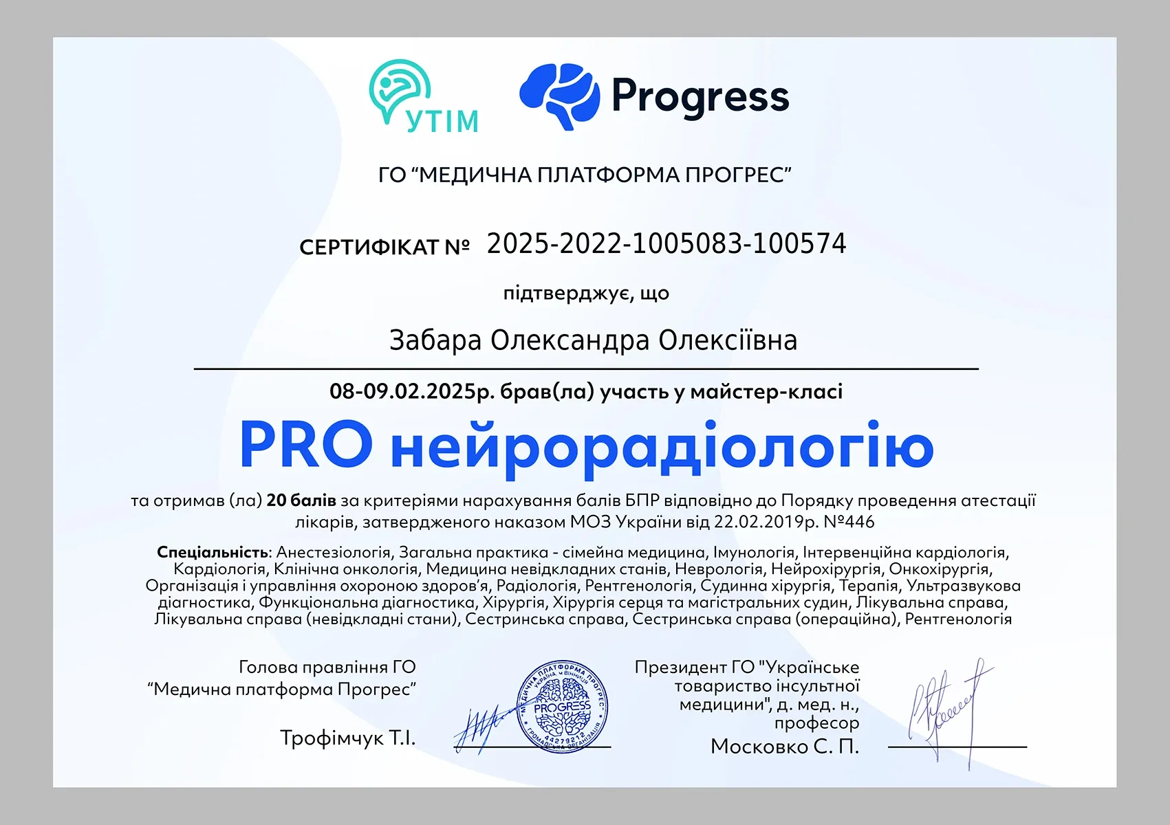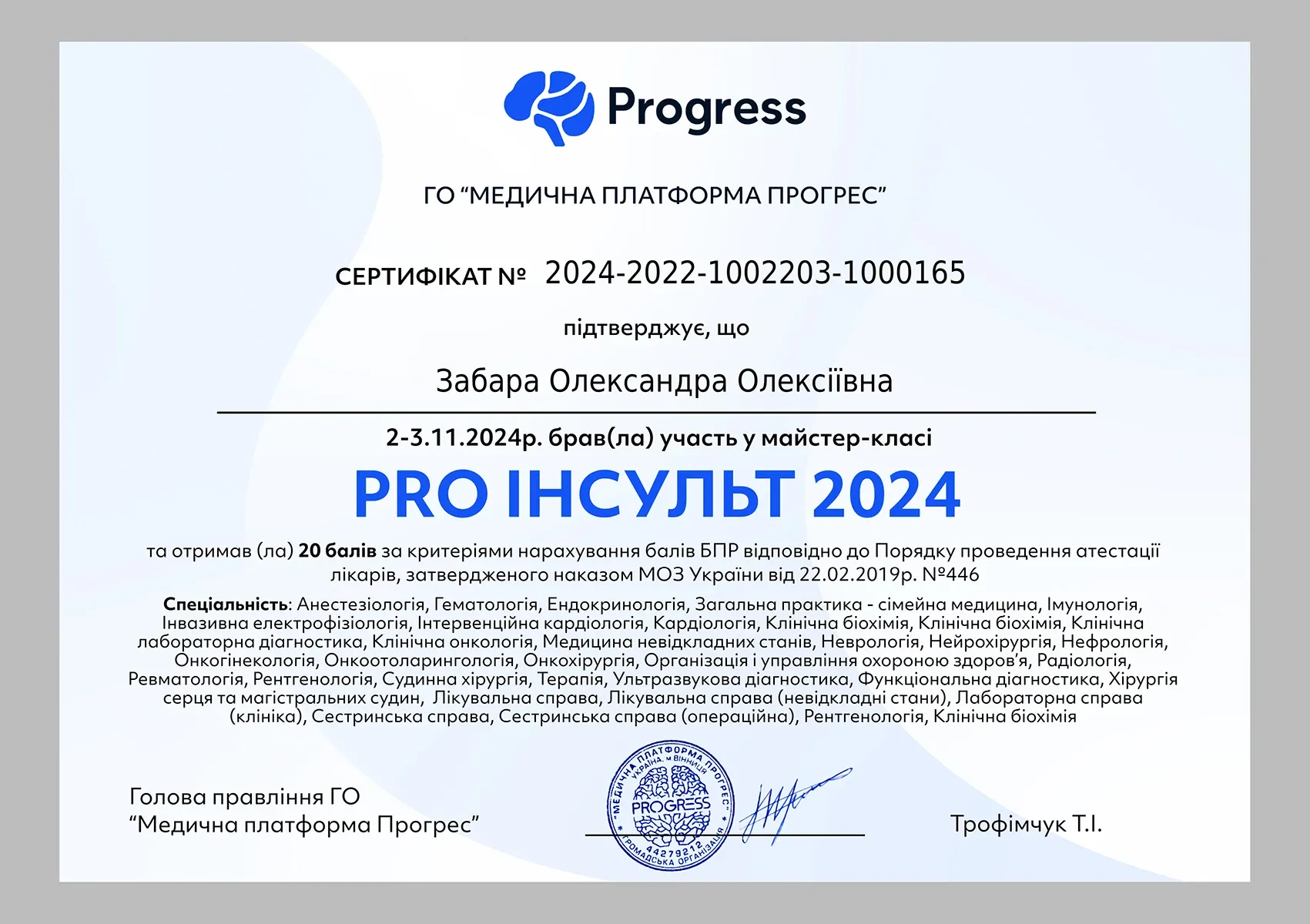 Проходила стажування в інсультному центрі Дніпровської лікарні ім. І. І. Мечнікова 2023 р.